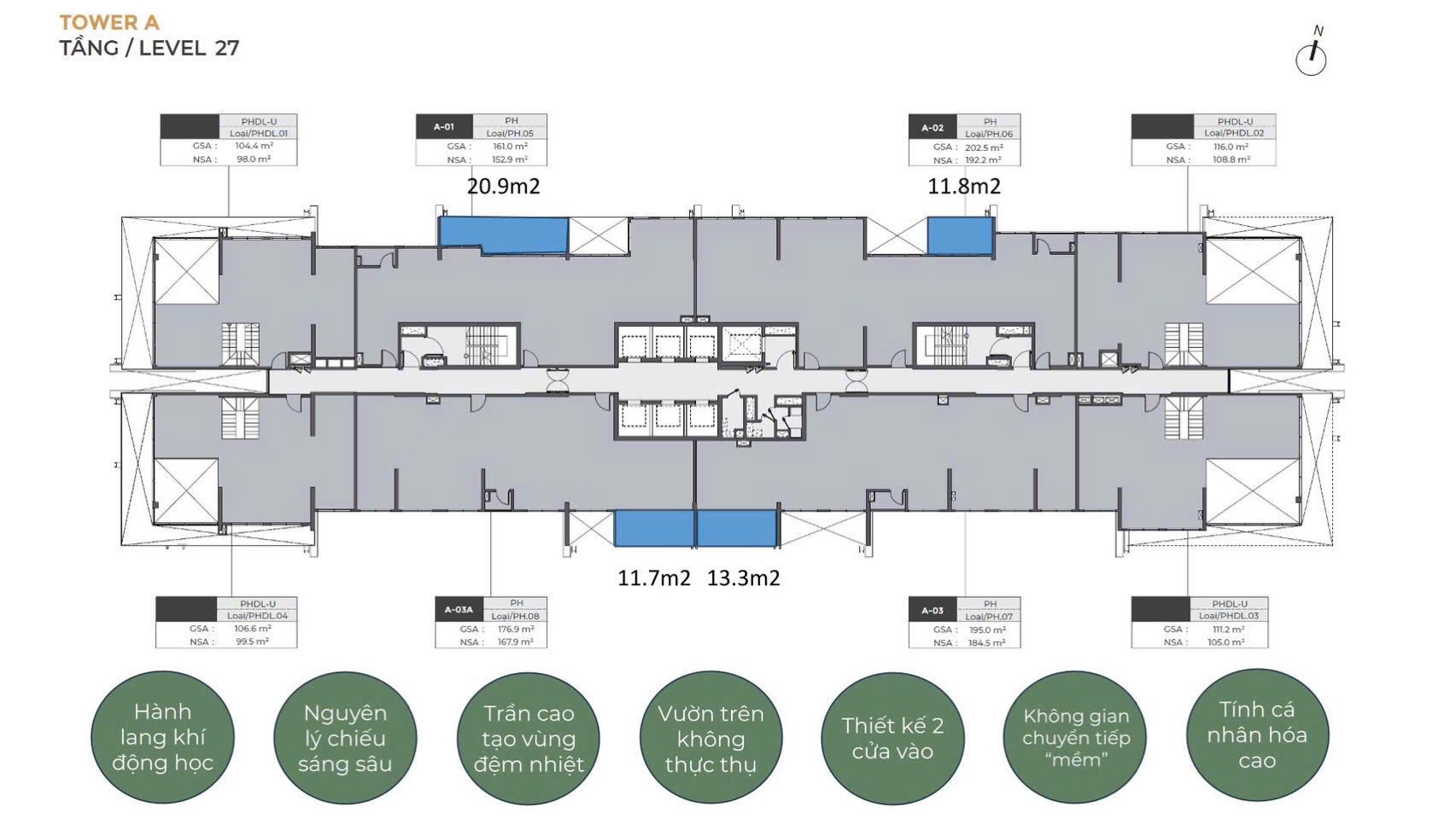 • Diện tích Penthouse: 161 – 225.4m2